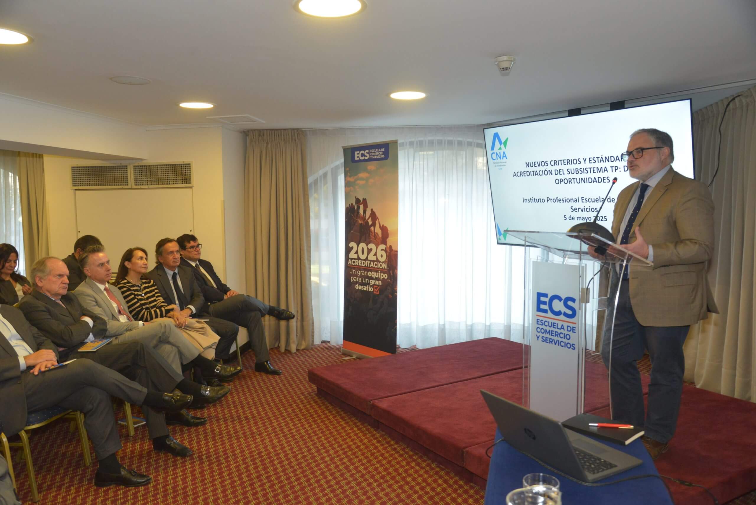 Con la participación de autoridades, colaboradores, docentes, estudiantes y titulados de la Escuela de Comercio y Servicio, se llevó a cabo la primera de una serie de actividades organizadas en el marco del trabajo institucional para el proceso de acreditación 2026. La jornada tuvo como expositor principal al destacado profesor Andrés Bernasconi Ramírez, presidente de la Comisión Nacional de Acreditación (CNA-Chile), quien abordó el tema: